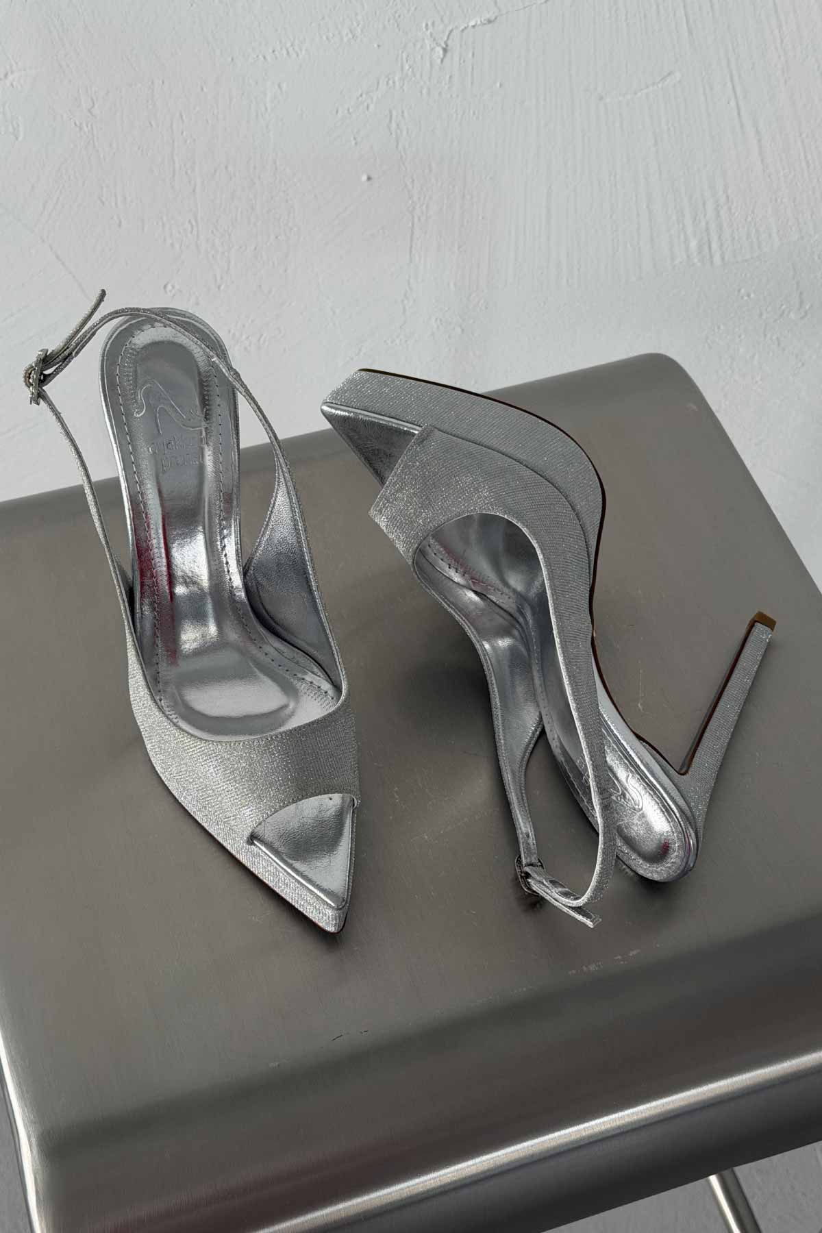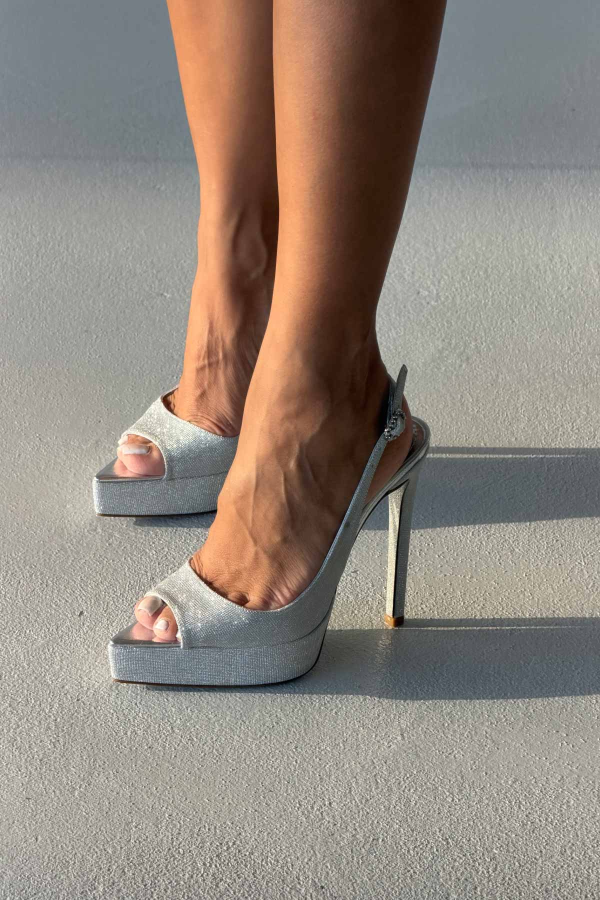 Alyce Simli Taban İnce Topuk 13 Cm Gümüş Simli Platform