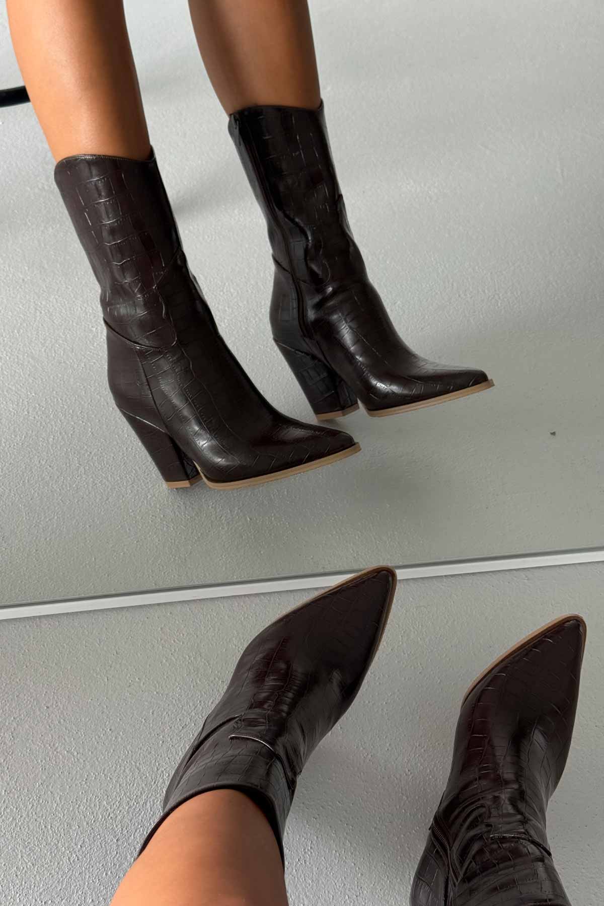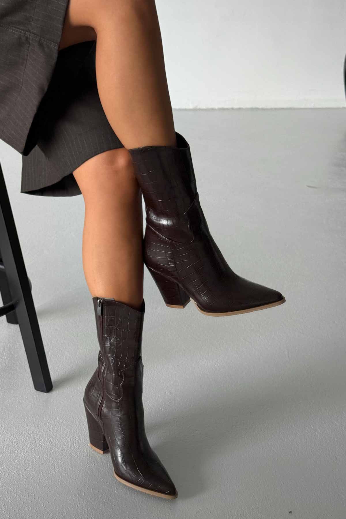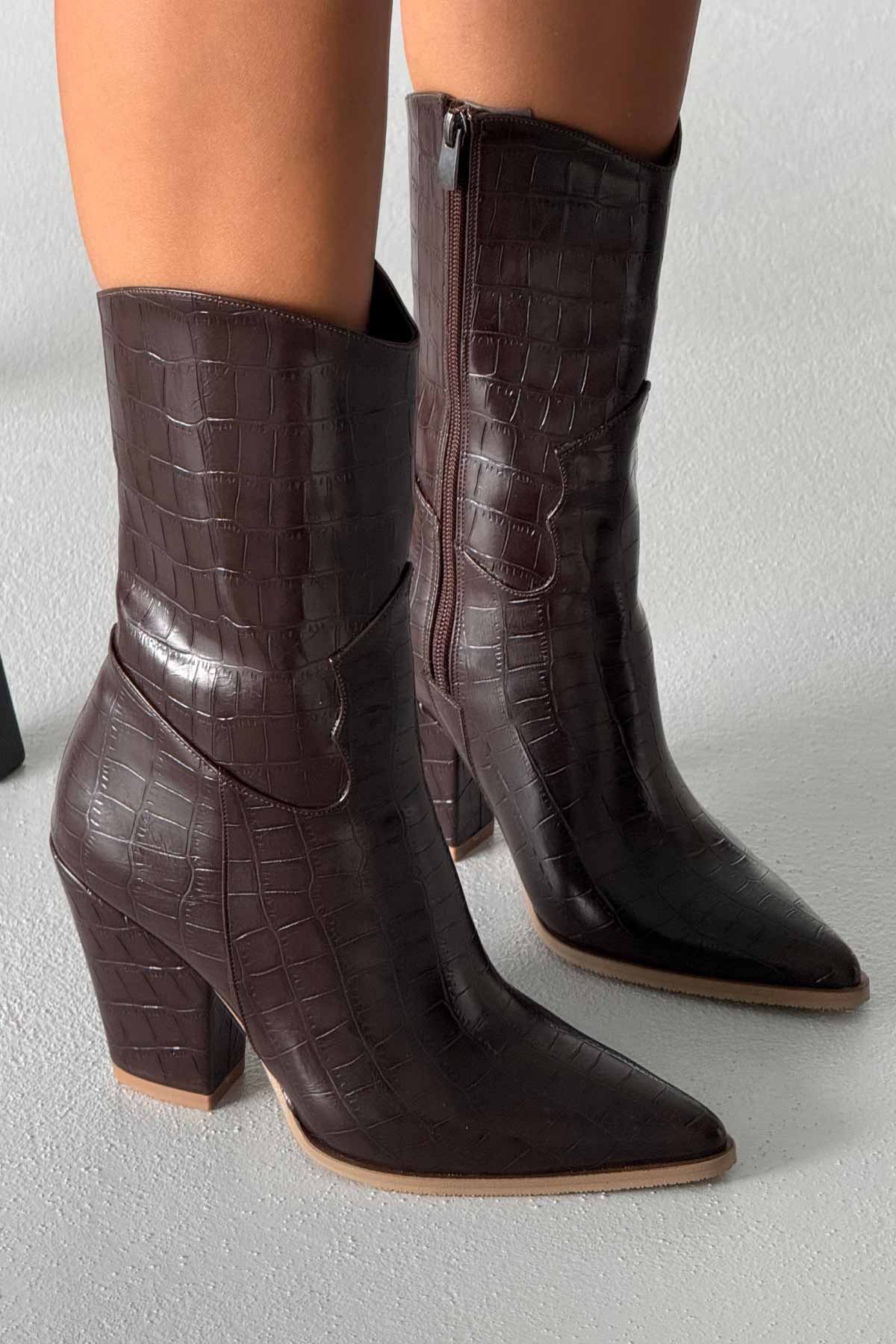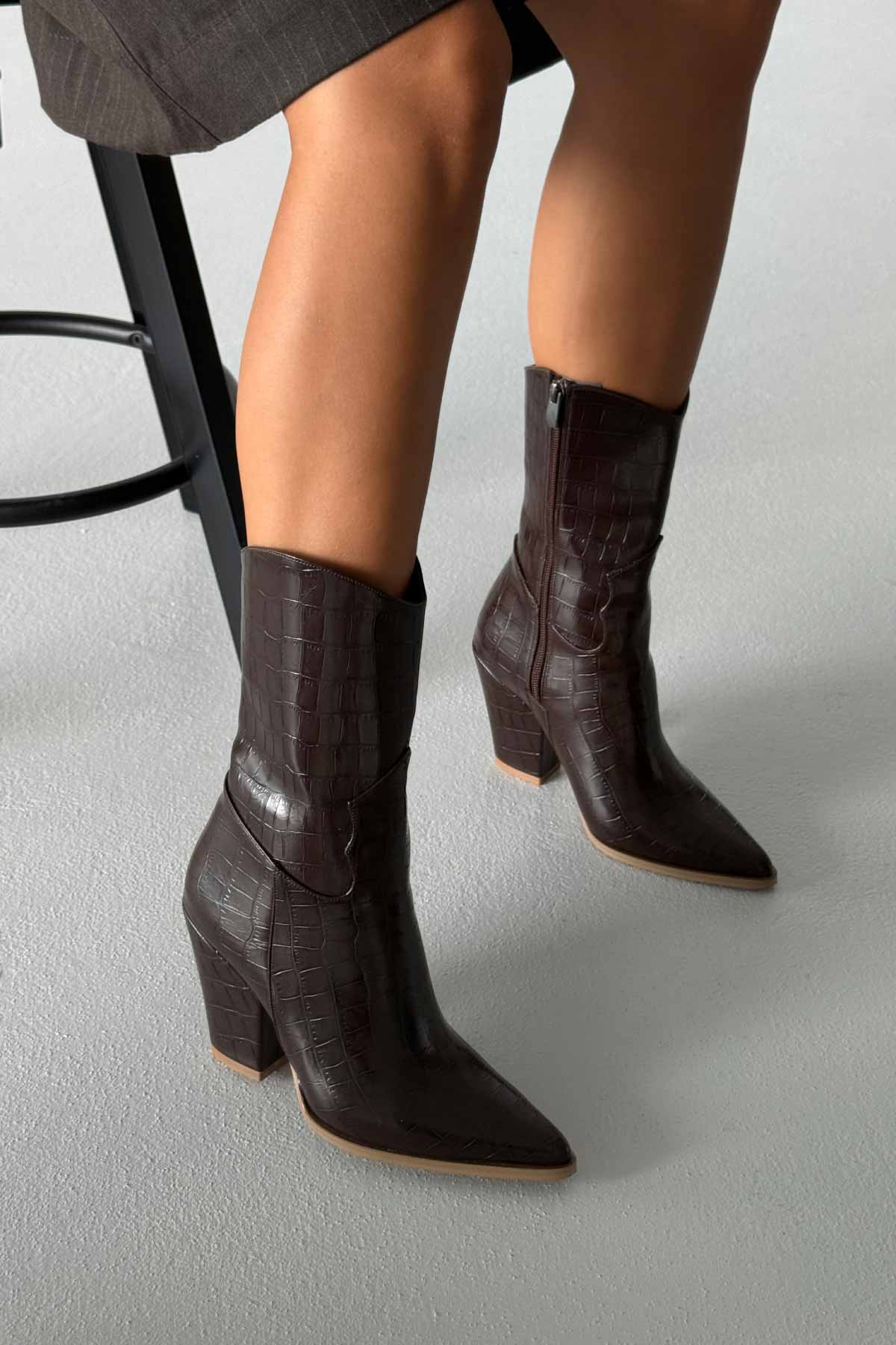 Cecilia KALIN TOPUK 9 CM KAHVE KROKO BOT