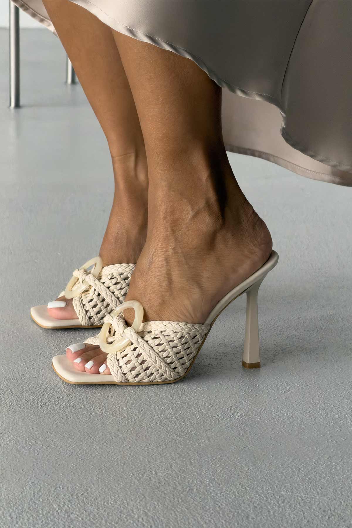 Echo İnce Topuk 10 Cm Hasır Bej Stiletto resmi Echo İnce Topuk 10 Cm Hasır Bej Stiletto resmi