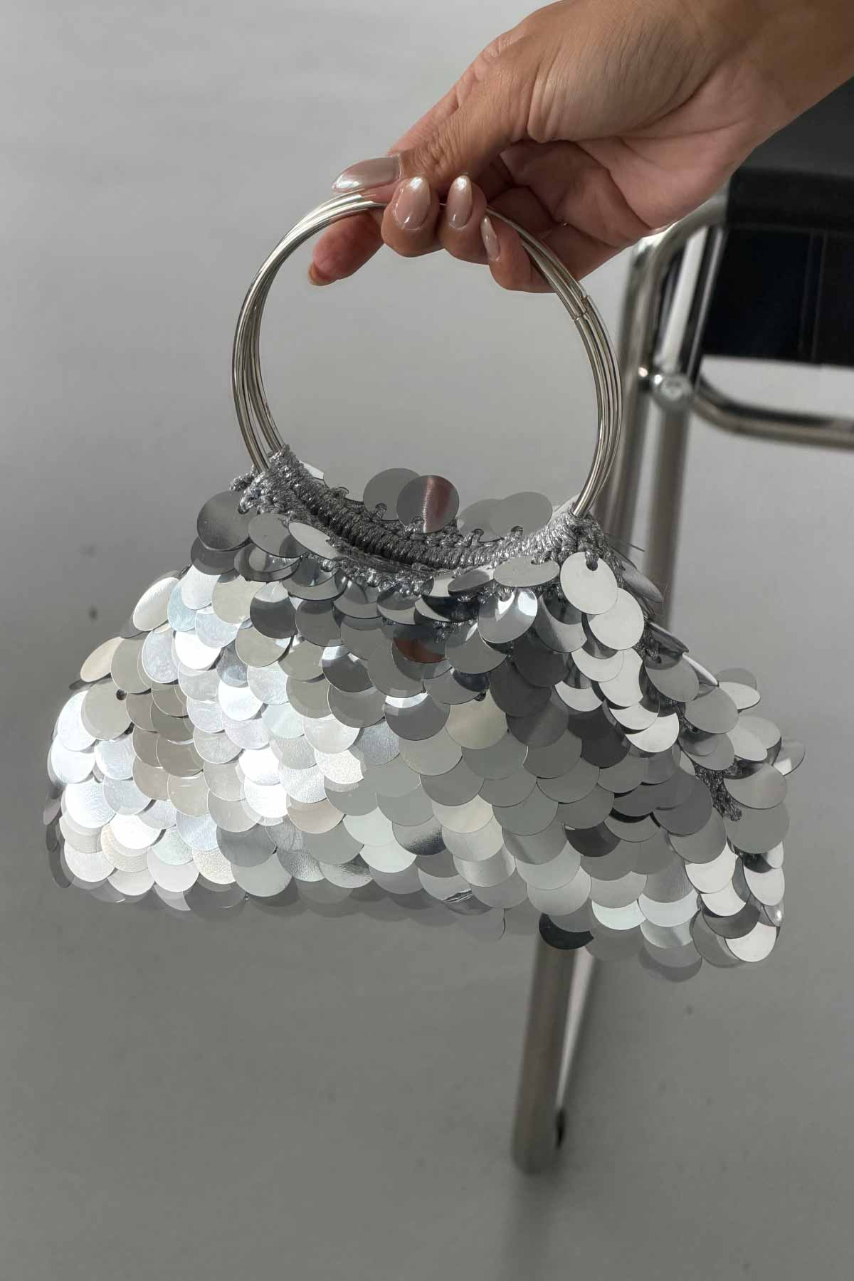 Elea Pullu Payetli Çanta GÜMÜŞ ÇANTA