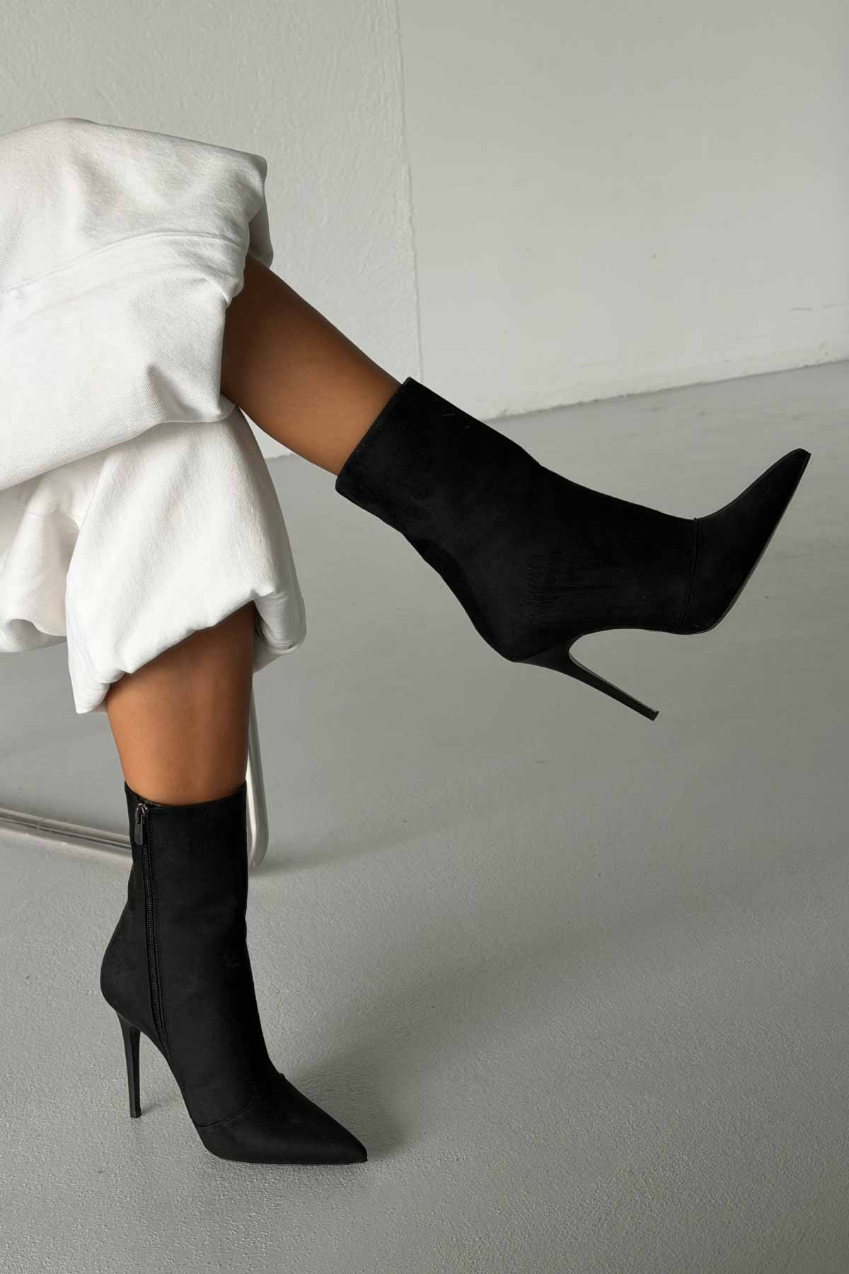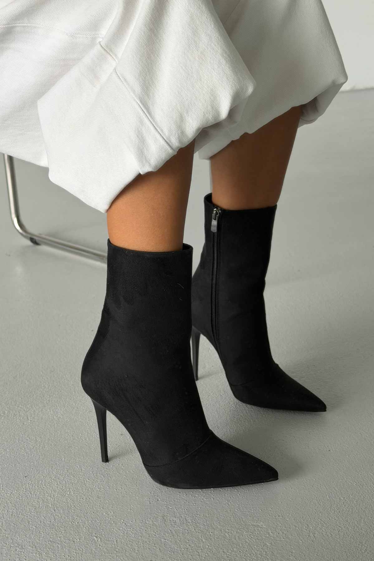 Eleganza İnce Topuk 10 Cm Siyah Süet Bot