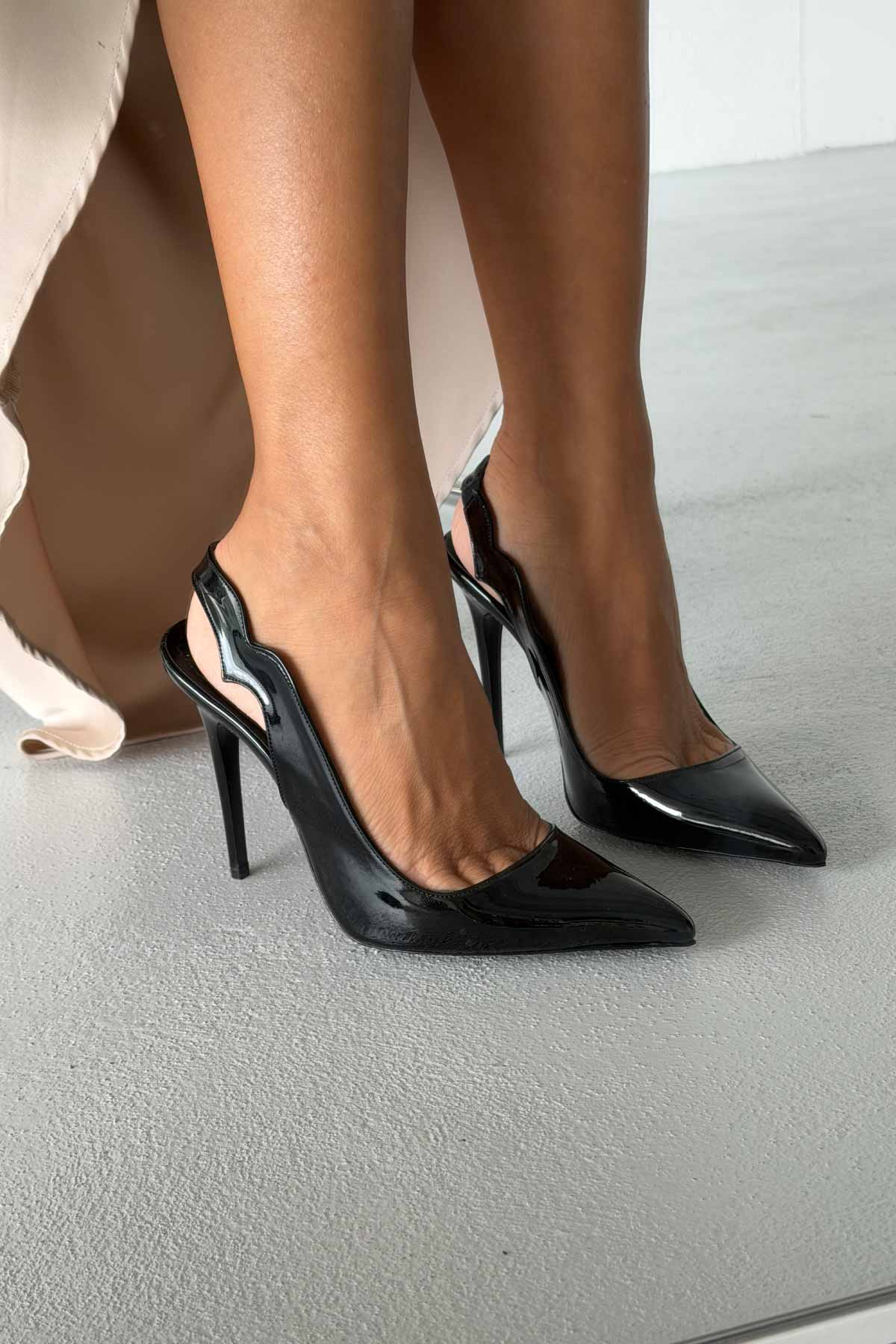 Elisa İnce Topuk 10 Cm Siyah Rugan Stiletto