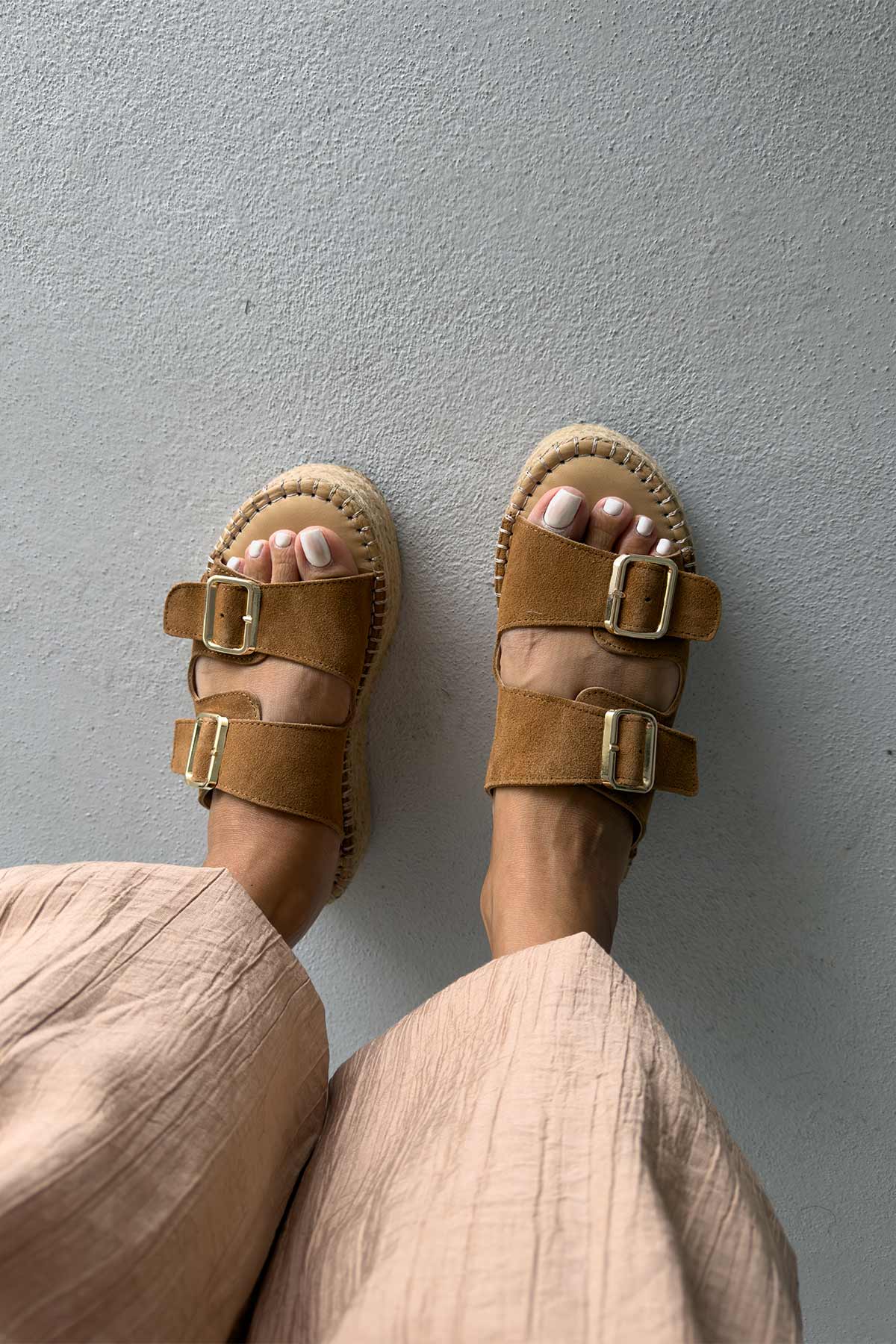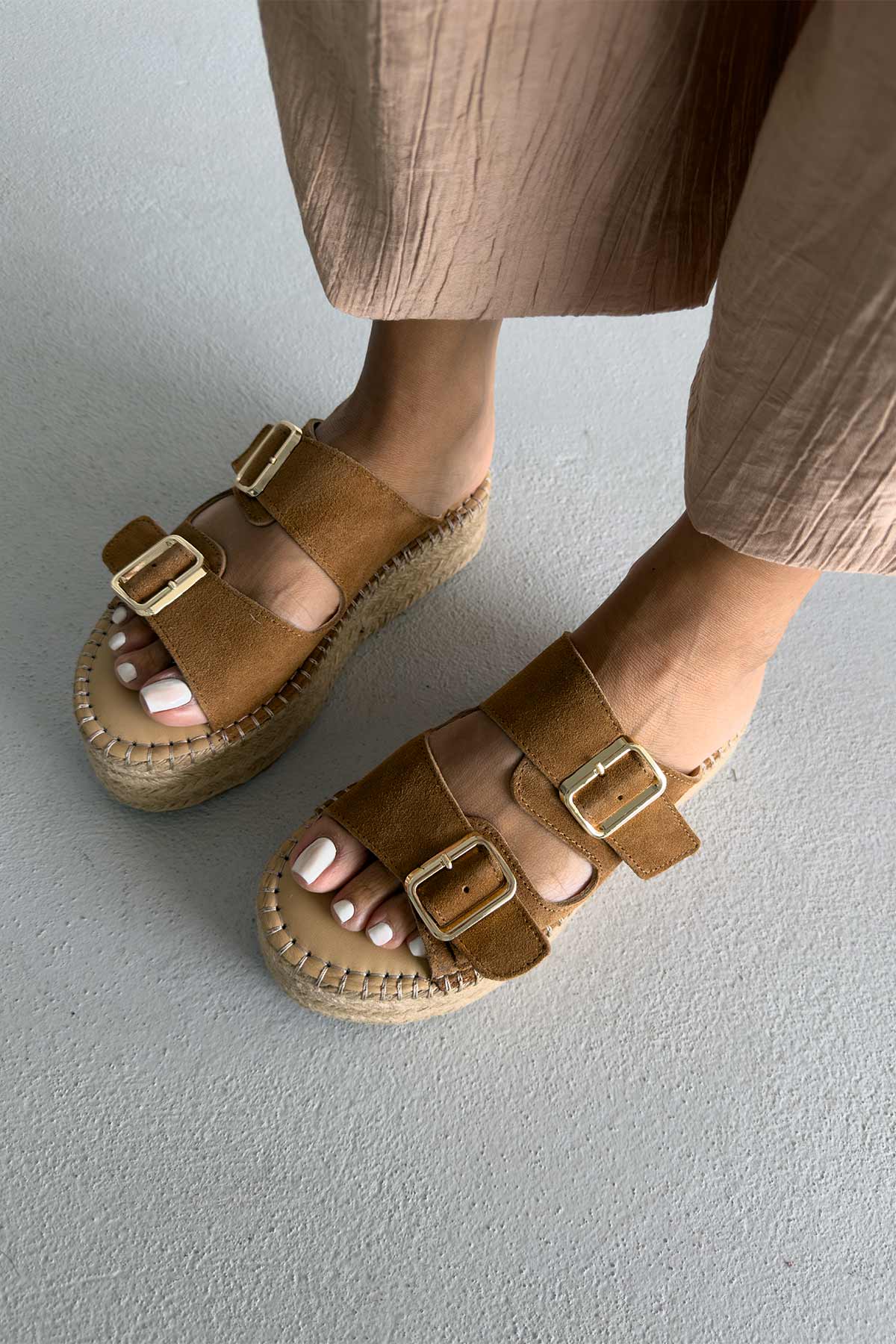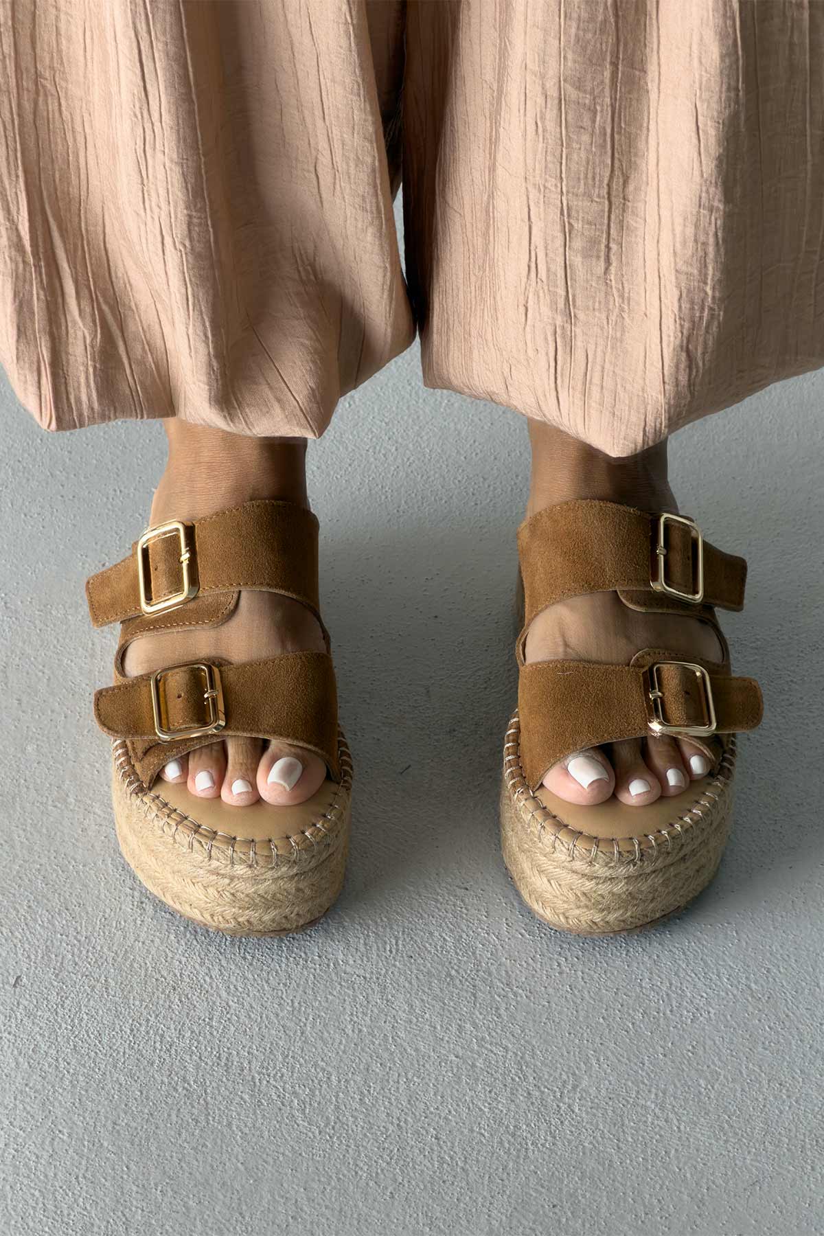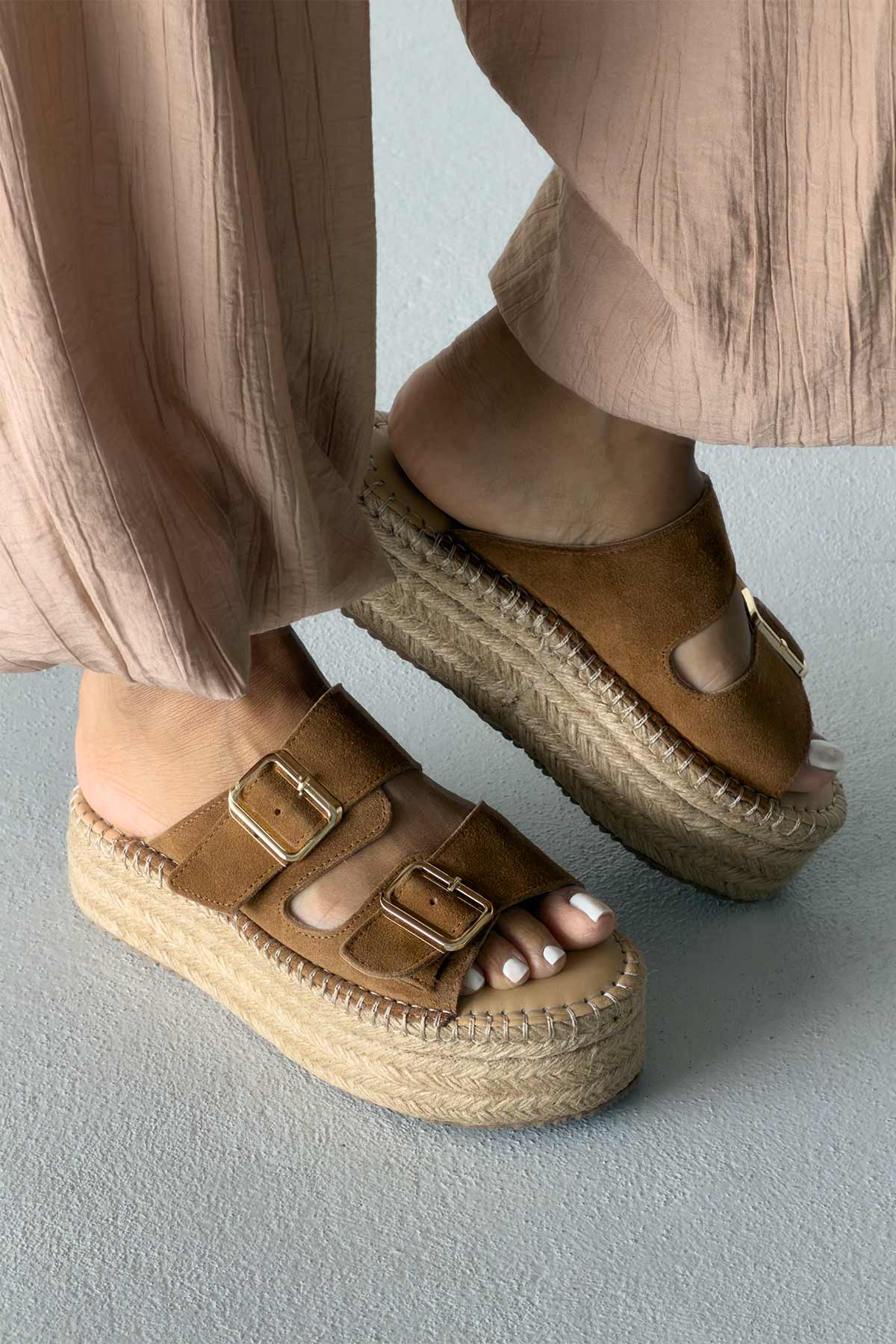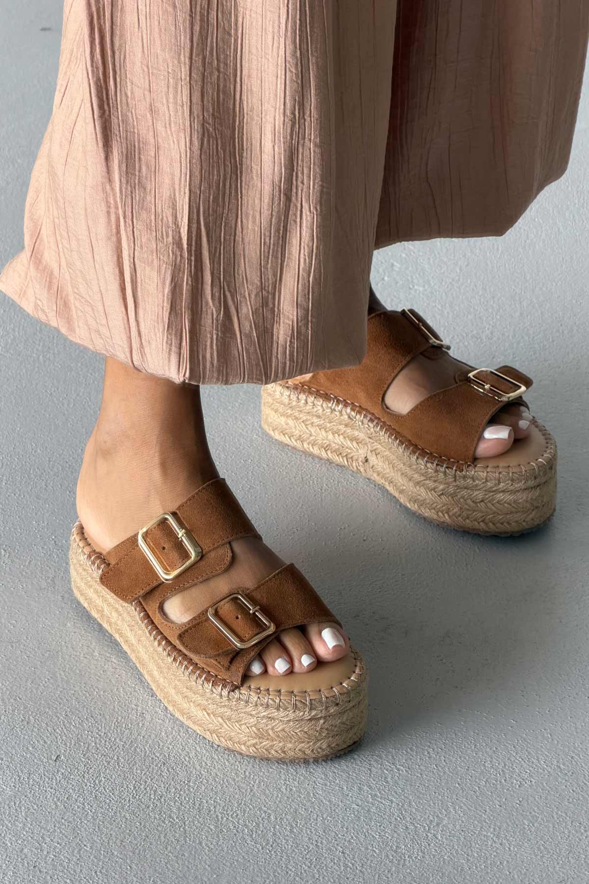 Ellinor Hakiki Deri Dolgu Topuk   5 CM TEN SÜET TERLİK