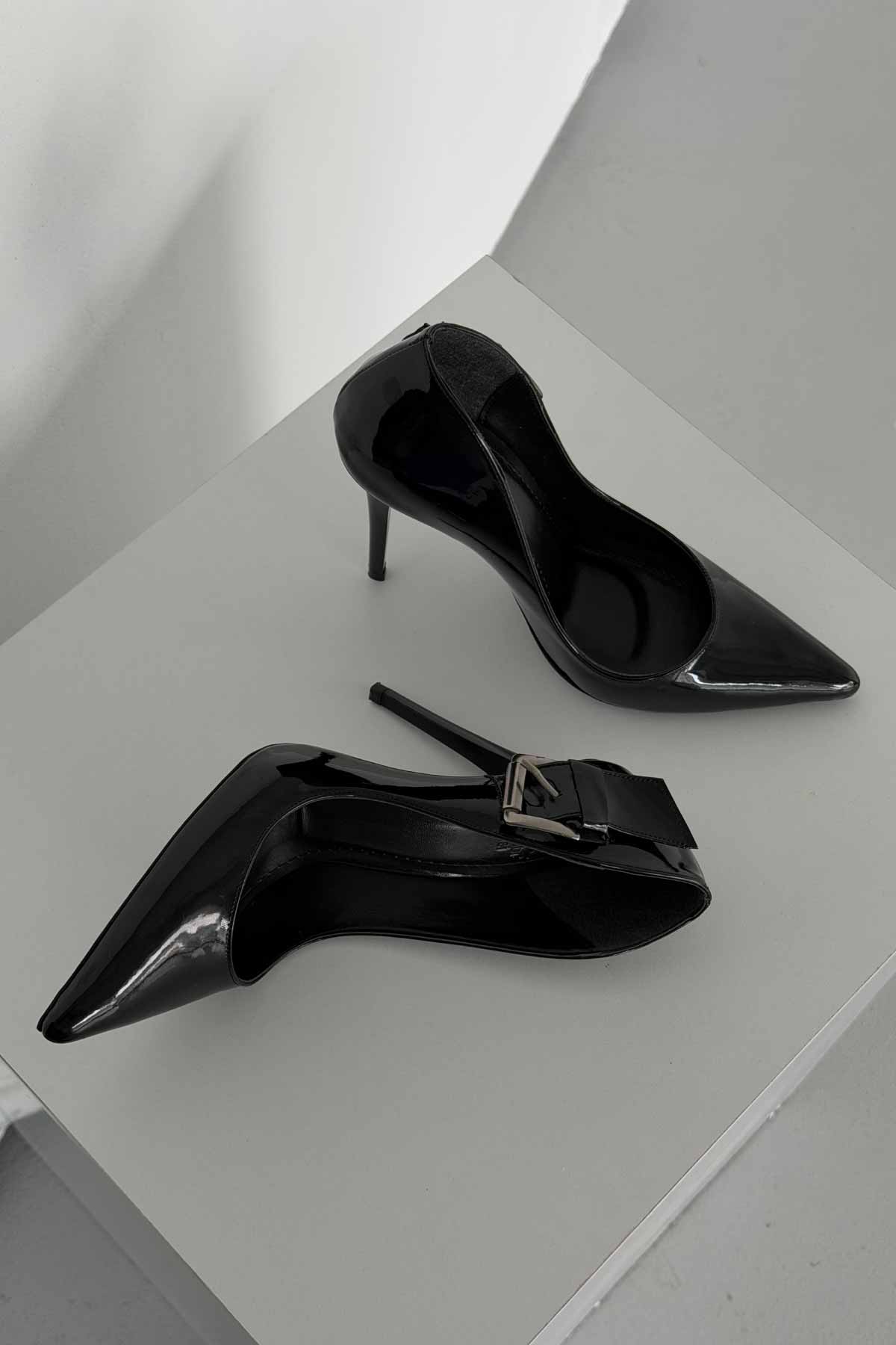 Awed Taşlı Toka Detaylı İnce Topuk 12 Cm Siyah Rugan Stiletto resmi Awed Taşlı Toka Detaylı İnce Topuk 12 Cm Siyah Rugan Stiletto resmi