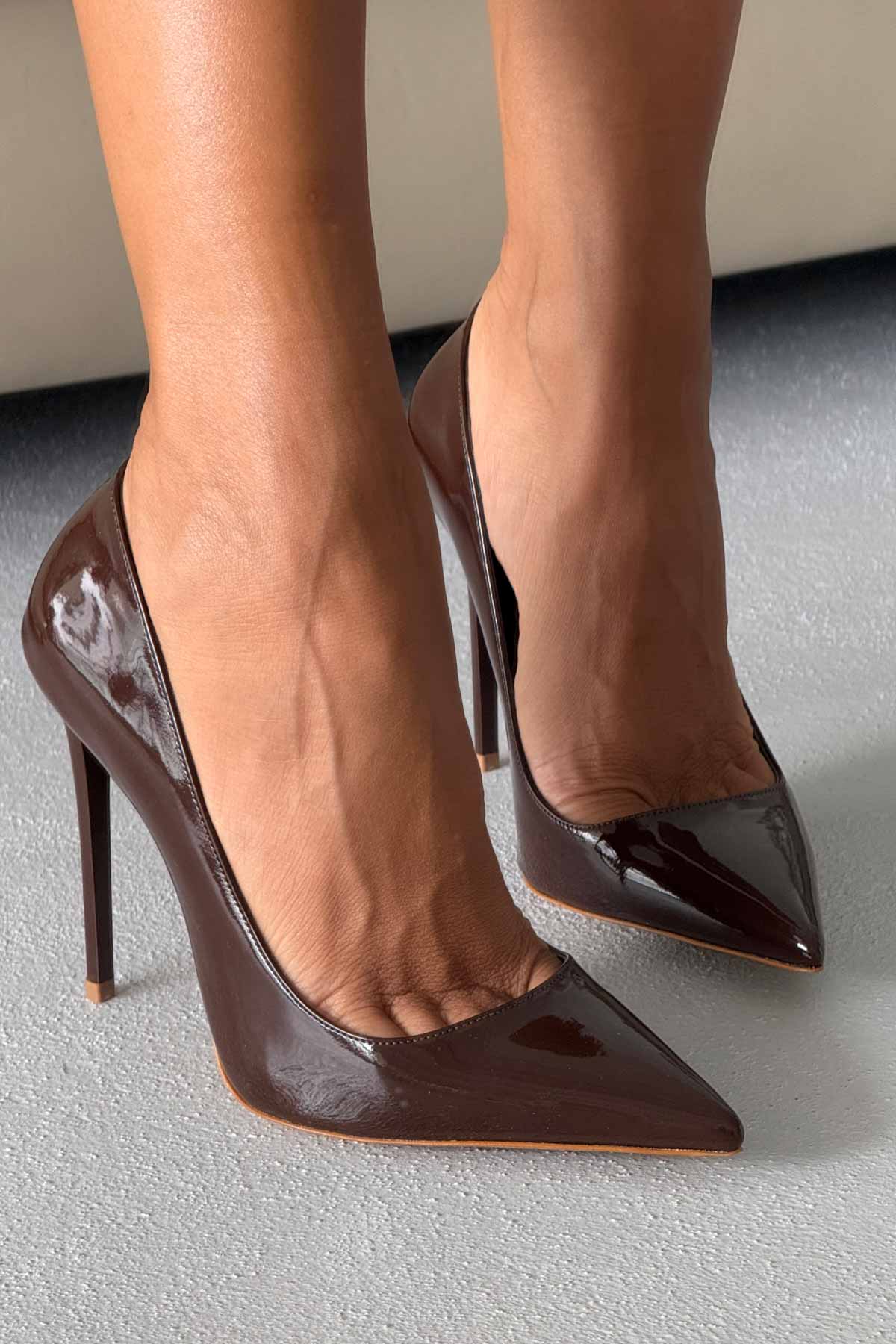 Opra İnce Topuk 12 Cm Acı Kahve Rugan Stiletto