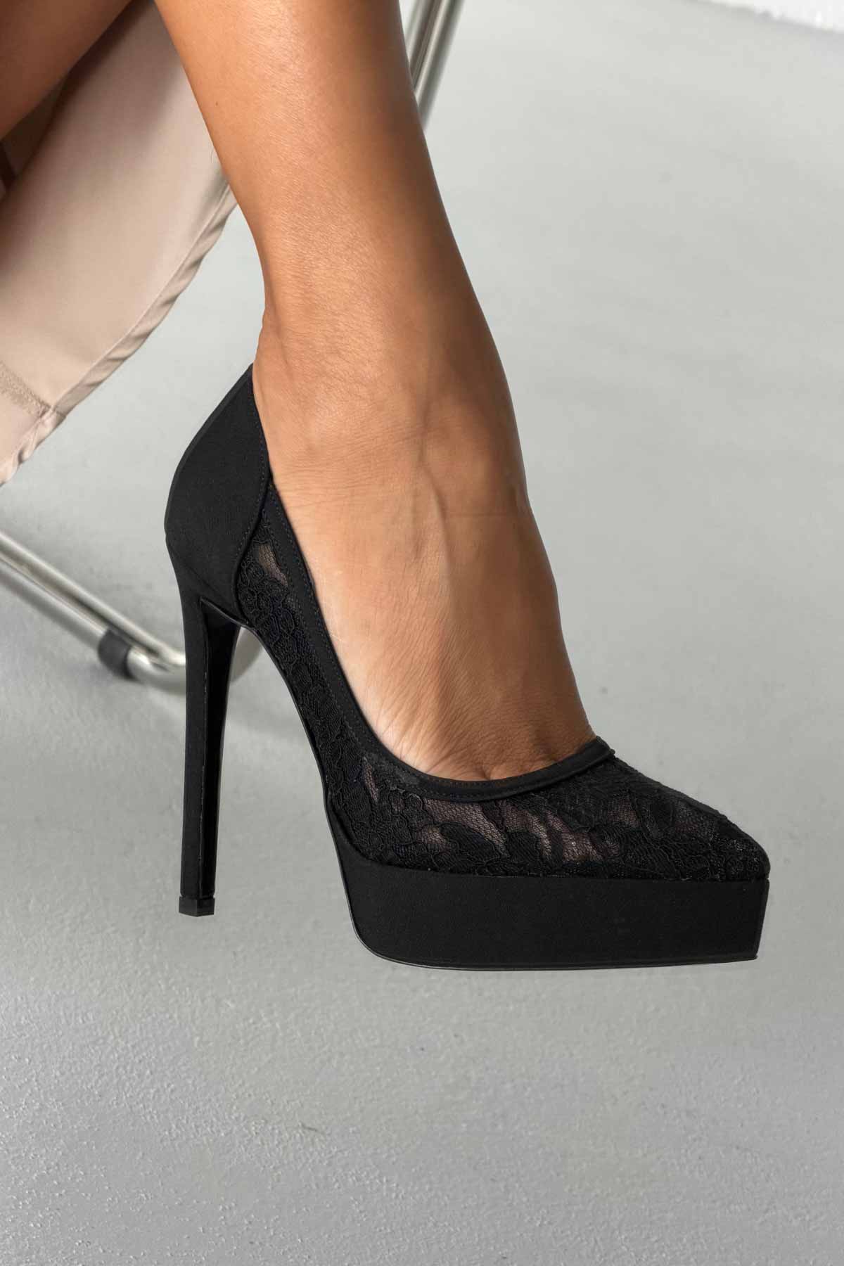 Rex İnce Topuk 13 Cm Siyah Dantelli Platform