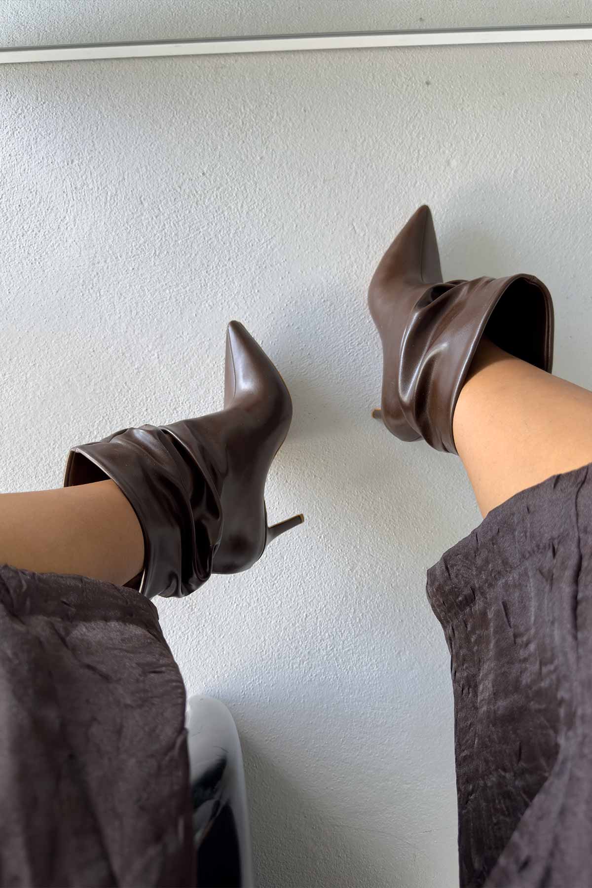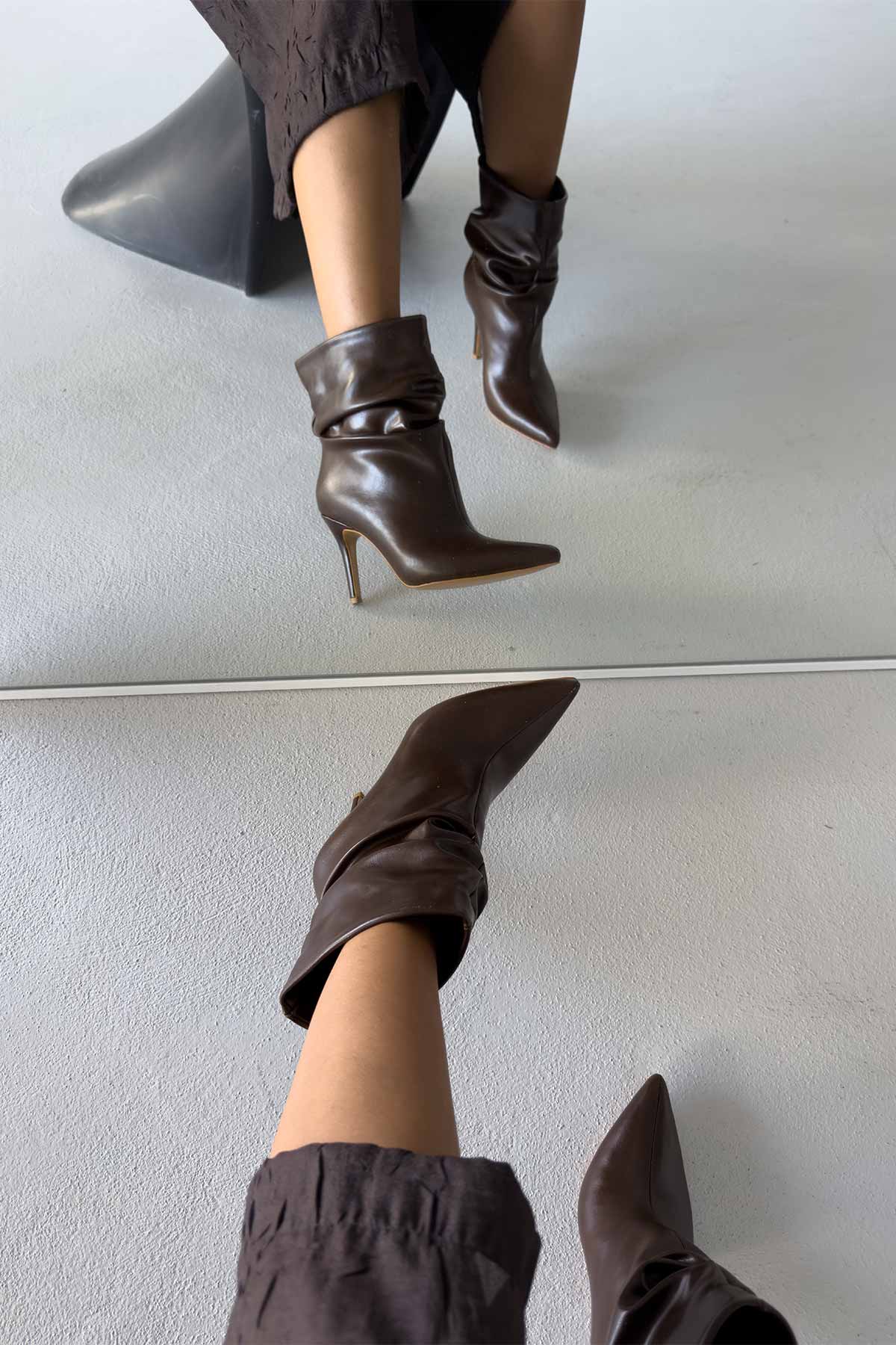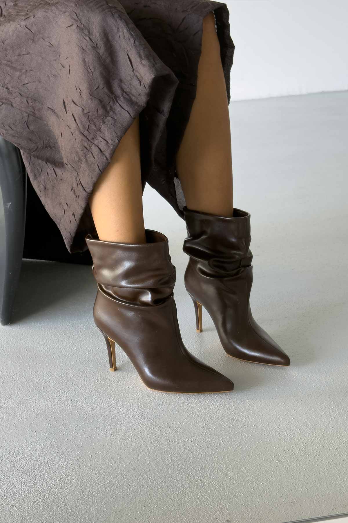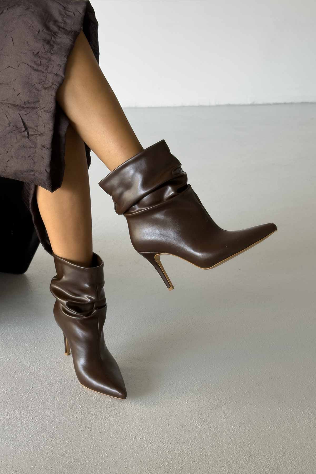 Ricki Körüklü İnce Topuk 8 Cm Acı Kahve Mat Bot
