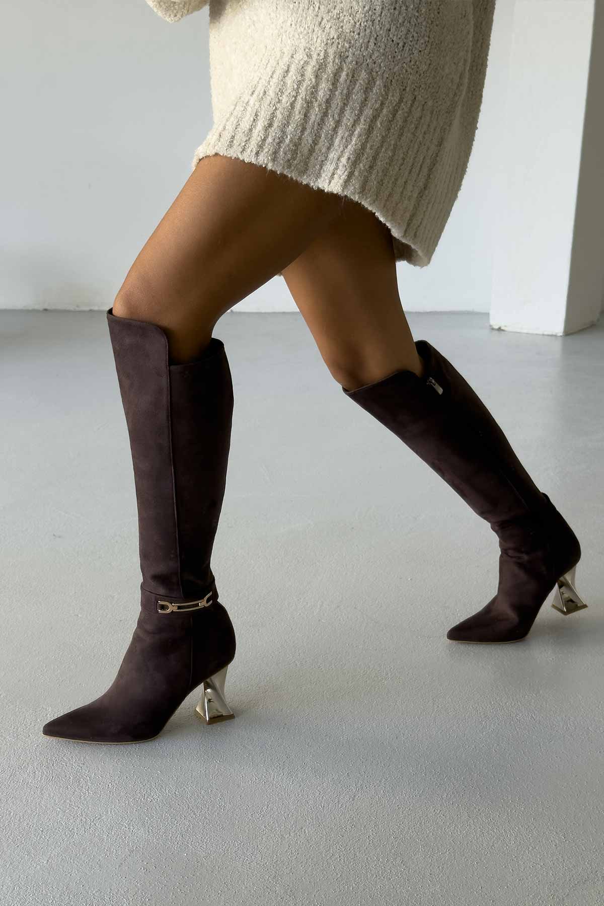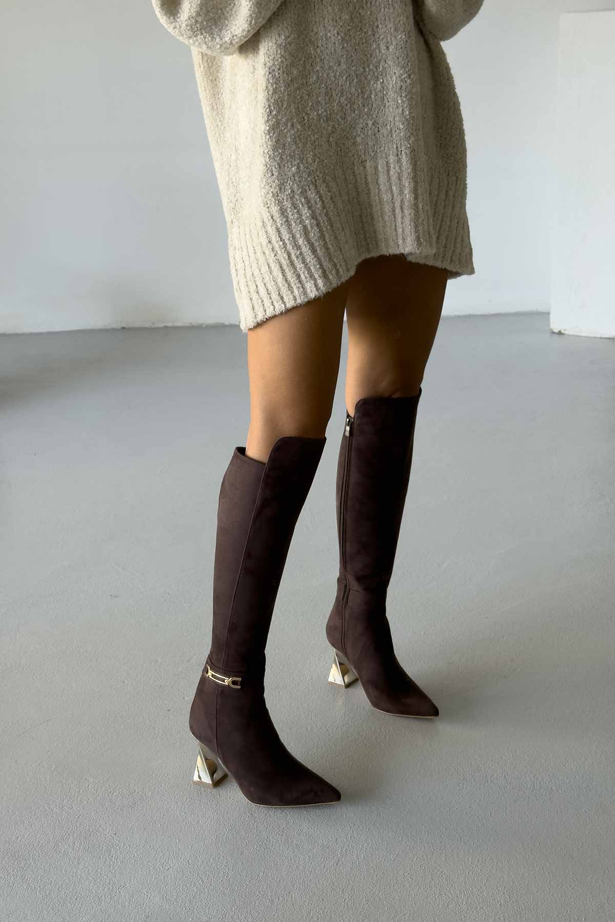 Thalia Toka Detaylı Kalın Topuk 8 Cm Kahverengi Süet Çizme resmi
