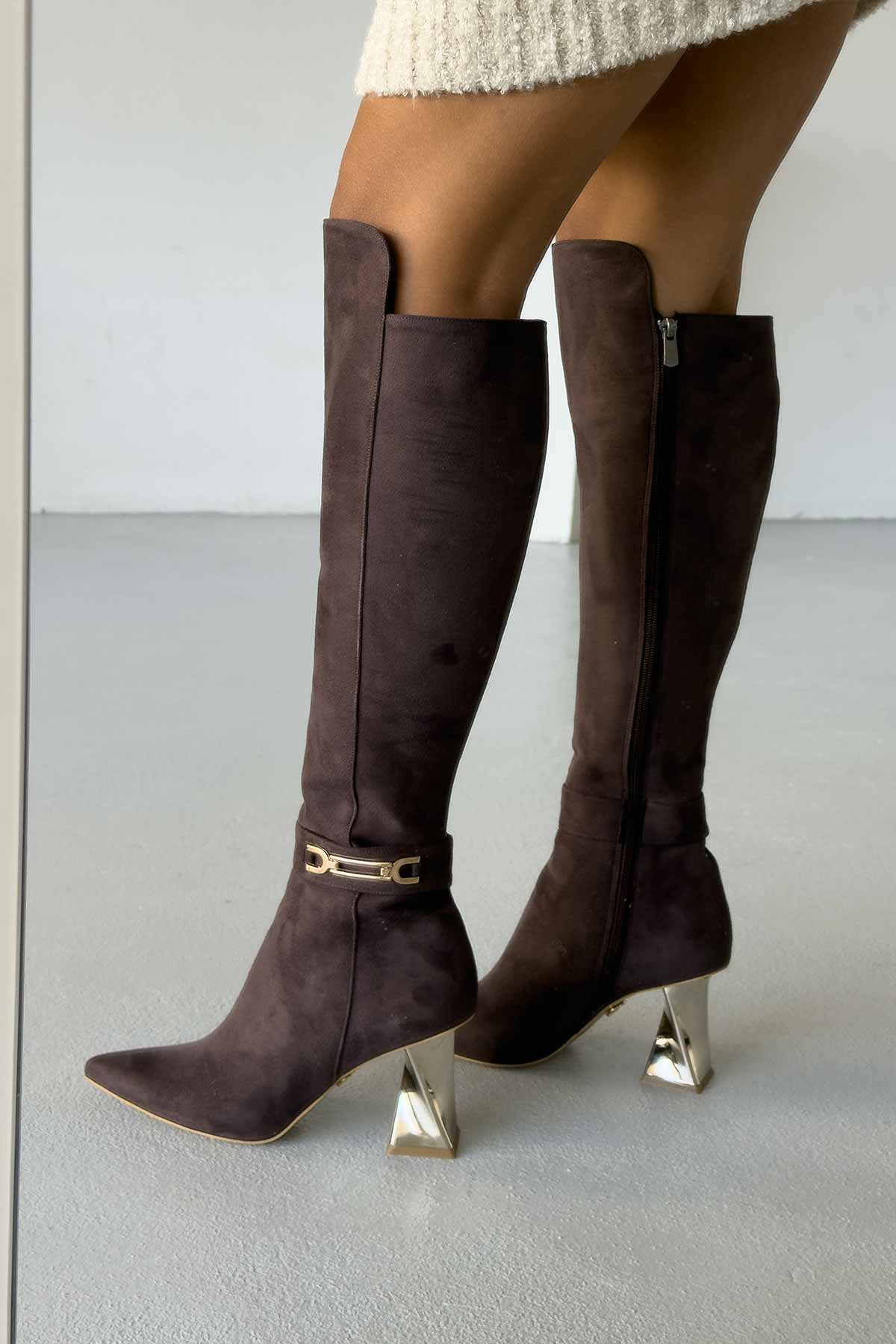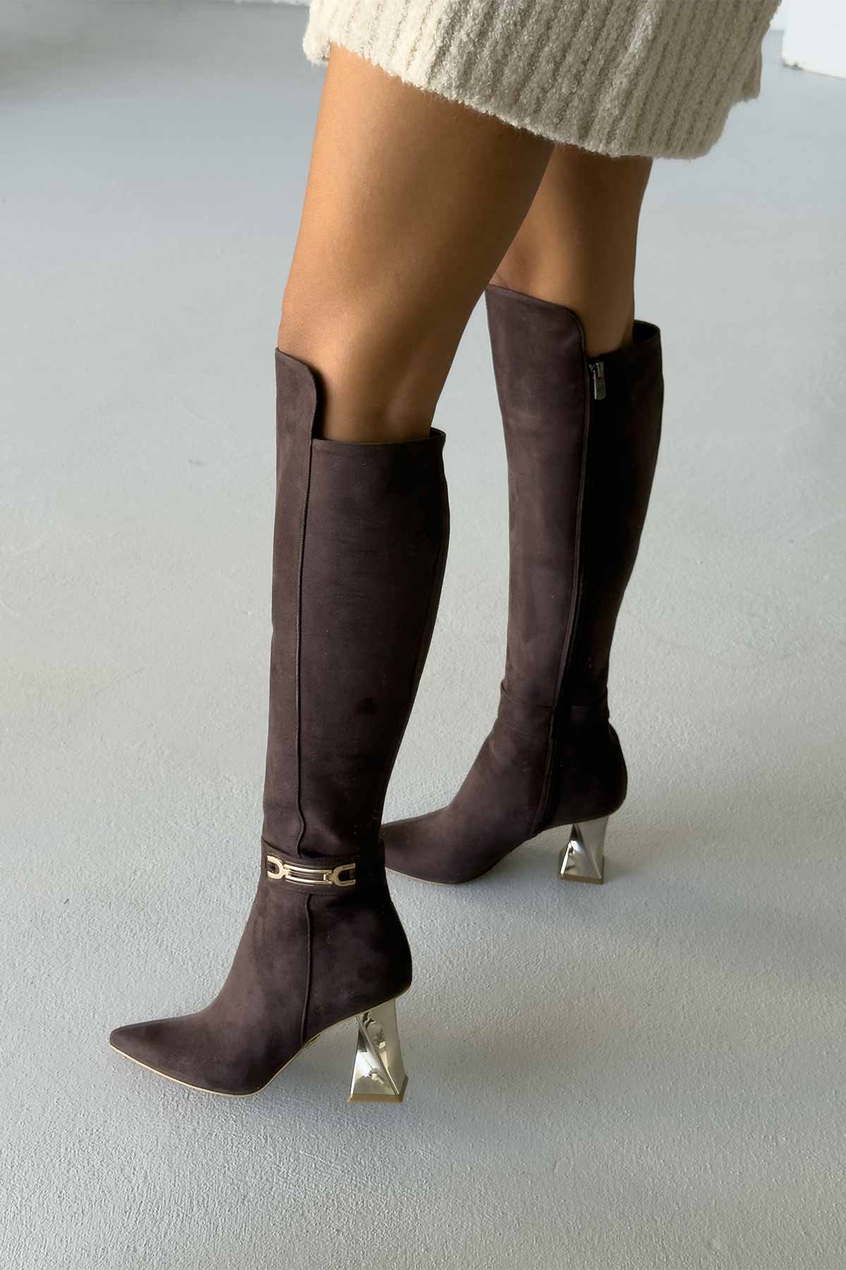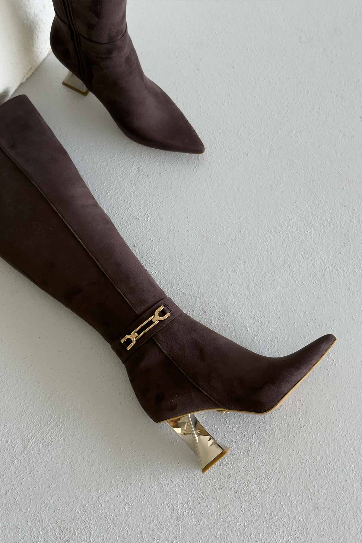 Thalia Toka Detaylı Kalın Topuk 8 Cm Kahverengi Süet Çizme