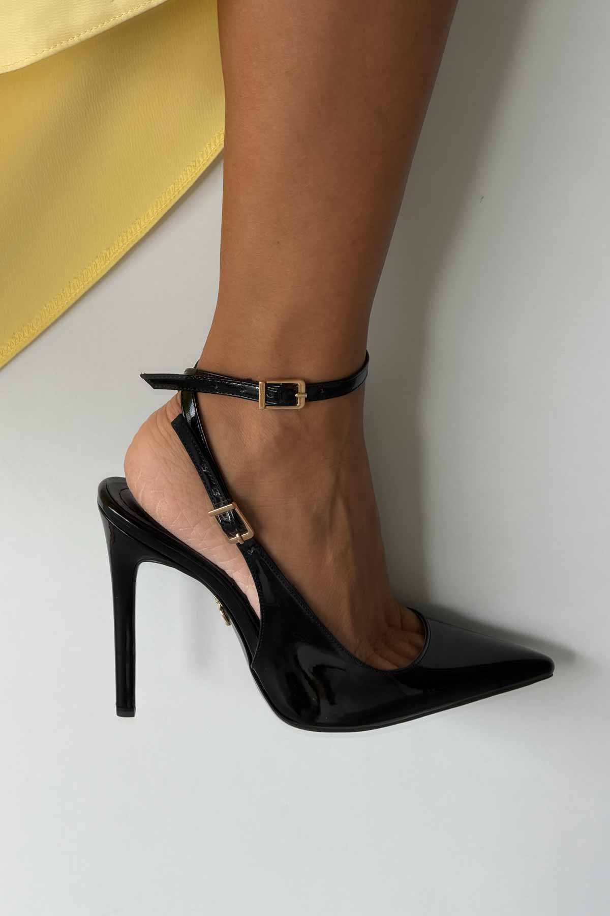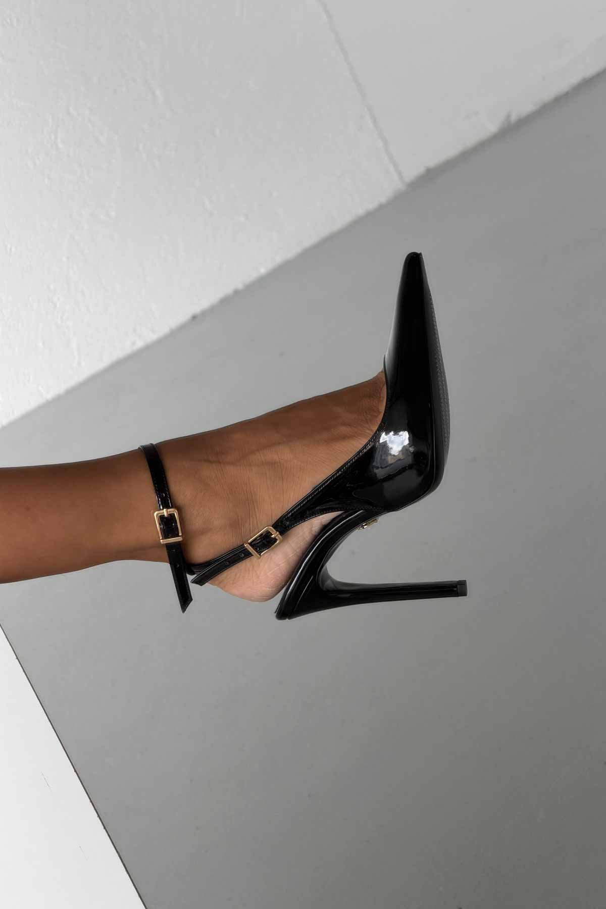 Awed Taşlı Toka Detaylı İnce Topuk 12 Cm Siyah Rugan Stiletto resmi Awed Taşlı Toka Detaylı İnce Topuk 12 Cm Siyah Rugan Stiletto resmi